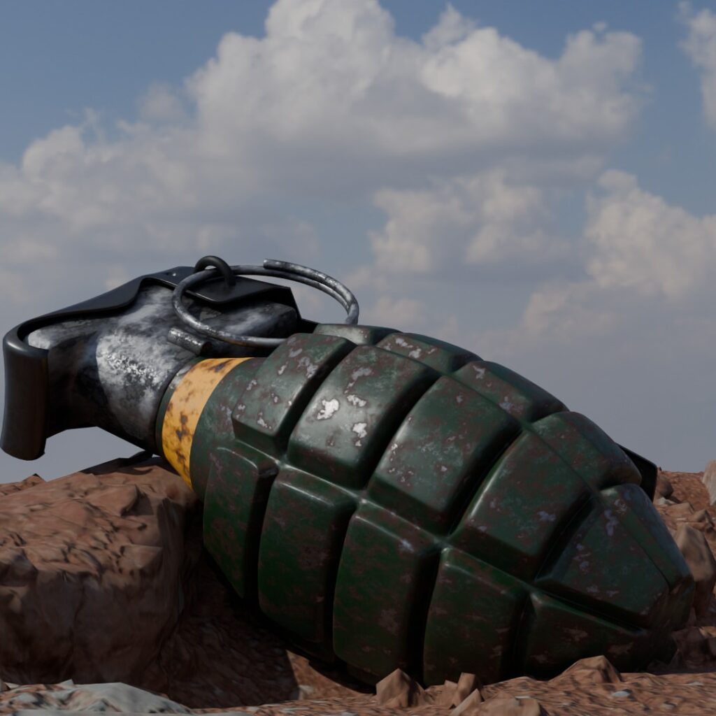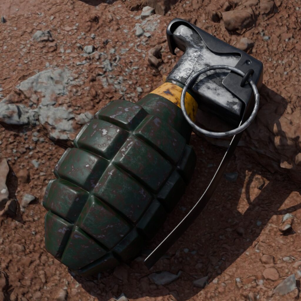 A highly detailed and realistic grenade model created using Unreal Engine, perfect for visual effects and game development projects.